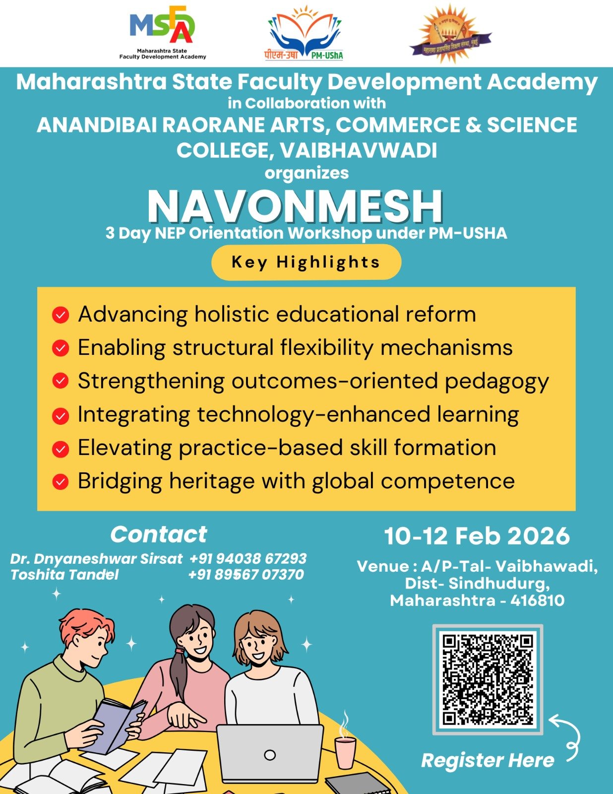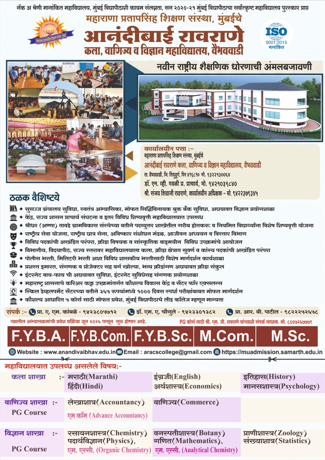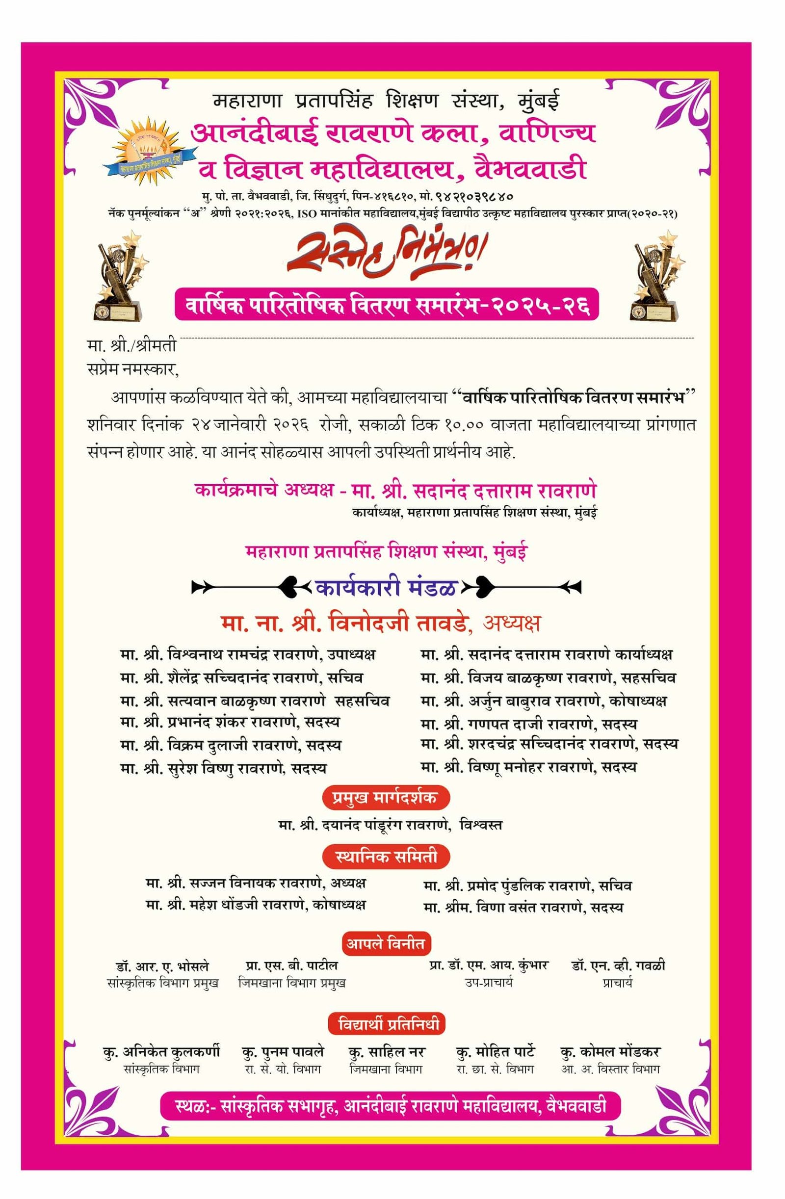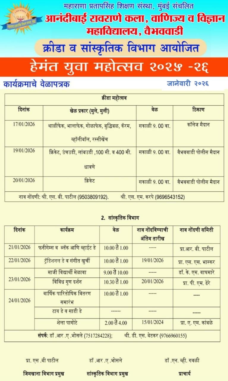 It gives me immense pleasure in saying that Maharana Pratapsinh Shikshan Sanstha, Mumbai Anandibai Raorane Arts, Commerce & Science College, Vaibhavwadi has achieved a good name and fame with a firm foundation on the horizon of education.
