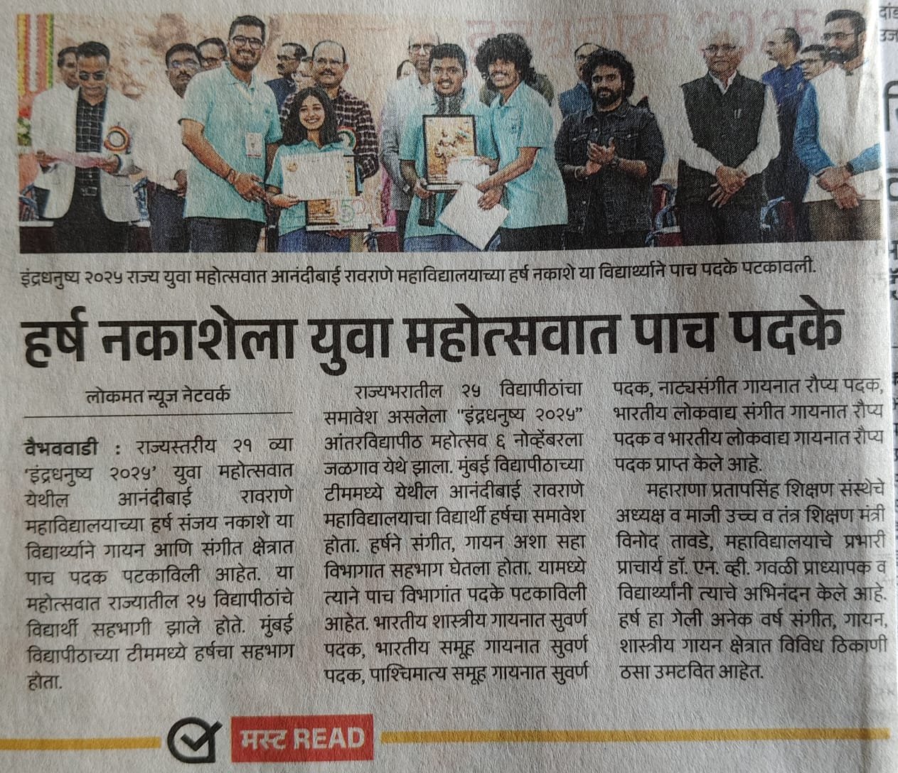 Golden boy award to Harsh Nakashe in Indradhanushya Event 2025